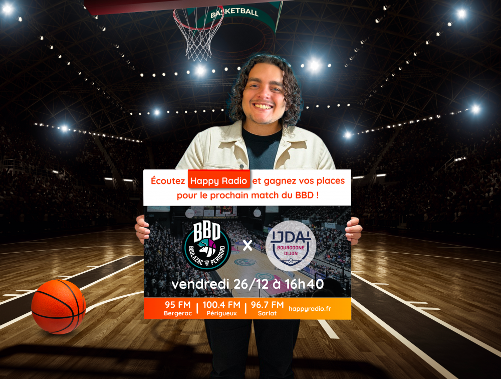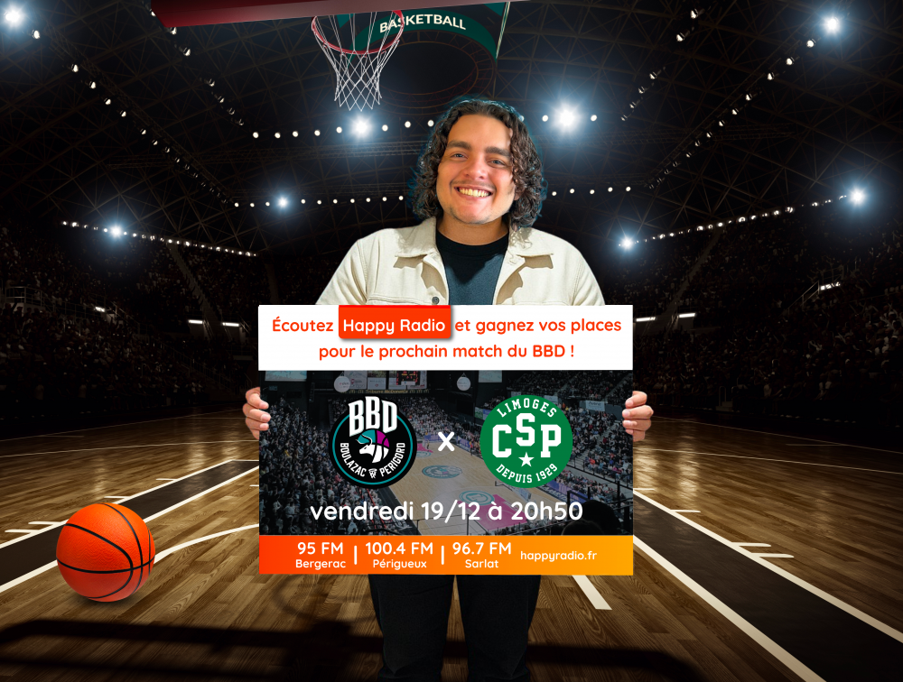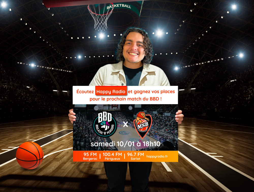 Vous rêvez de vivre une soirée basket inoubliable ? Happy Radio vous offre l’opportunité de supporter votre équipe préférée, le Boulazac Basket Dordogne ! Participez à notre jeu concours et